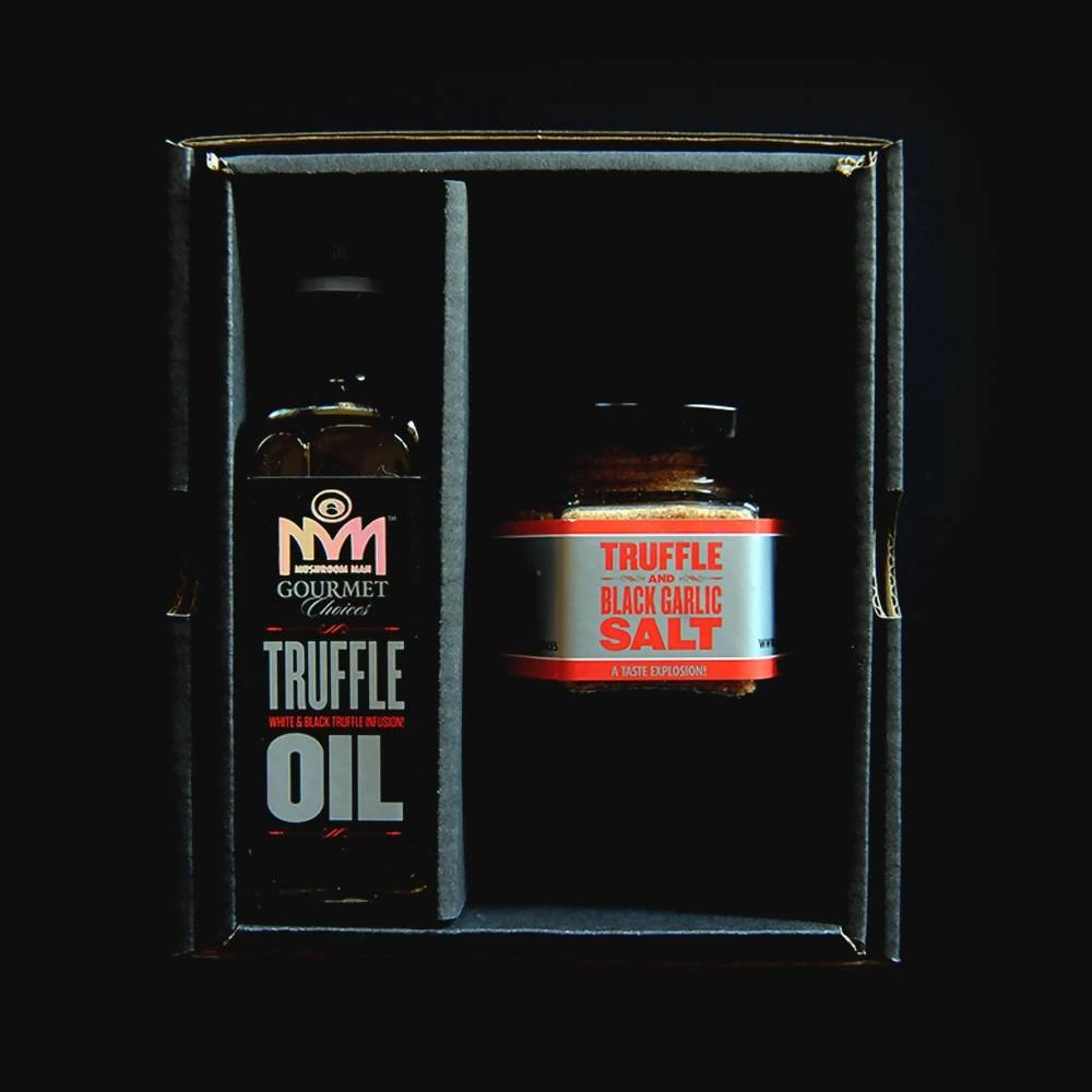 Truffle Oil (white and black infusion). Truffle and Black Garlic Salt.
