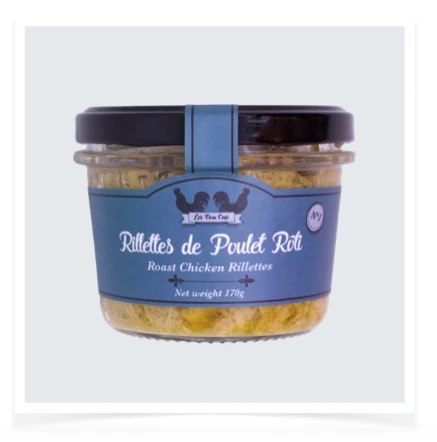 Ingredients: Chicken meat, duck fat, onions, olive oil, garlic, spices.