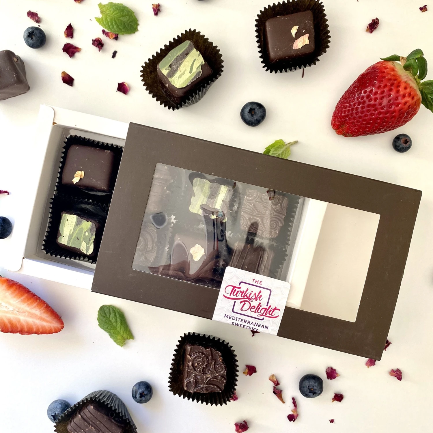 This gift pack comes with 8 handcrafted chocolate-coated Turkish Delight pieces.