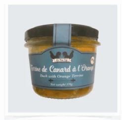 Ingredients: Duck meat & liver, pork meat, shallots, eggs, flour, orange brandy & zest, garlic, spices & herbs, salt.