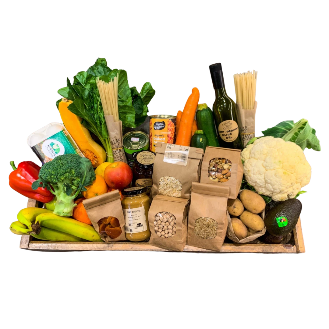 Our Home Essentials Box with Seasonal Certified Organic Fruit & Vegetables includes a selection of the highest quality seasonal certified organic produce in addition to the following items: