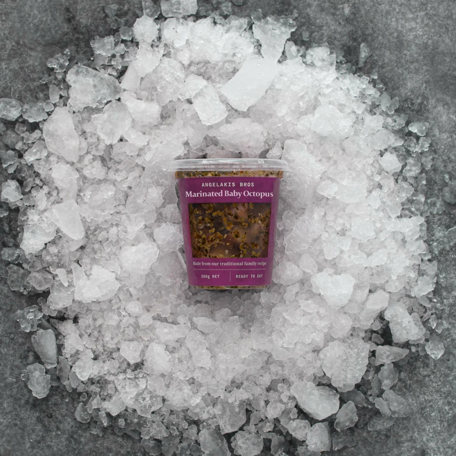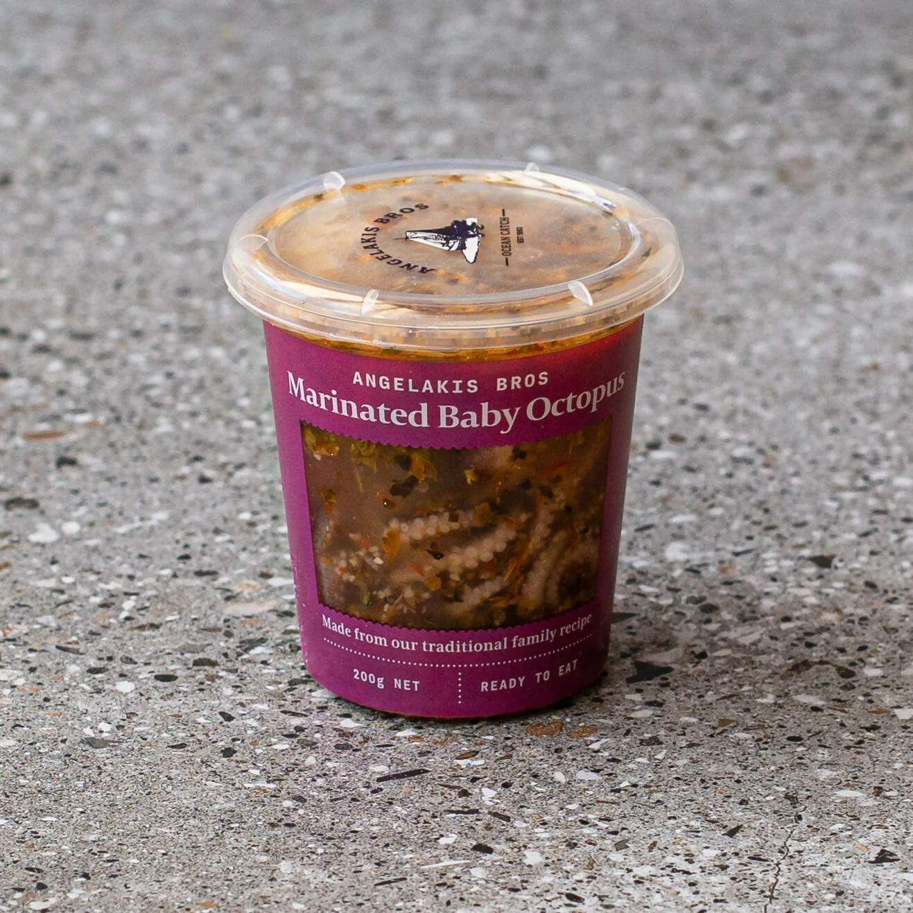 Made from our traditional family recipe, Angelakis Bros Marinated Baby Octopus ready to eat 200g tub.