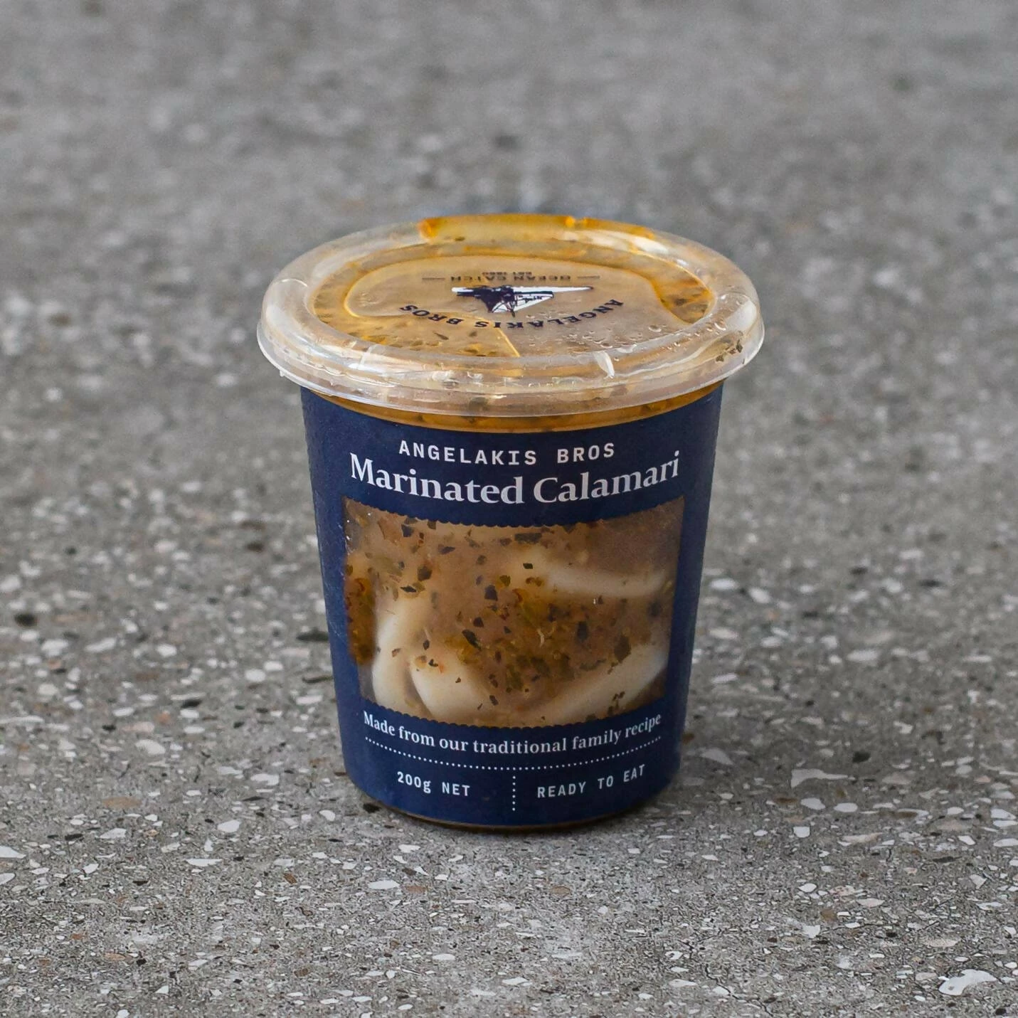 Made from our traditional family recipe, Angelakis Bros Marinated Calamari ready to eat 200g tub.