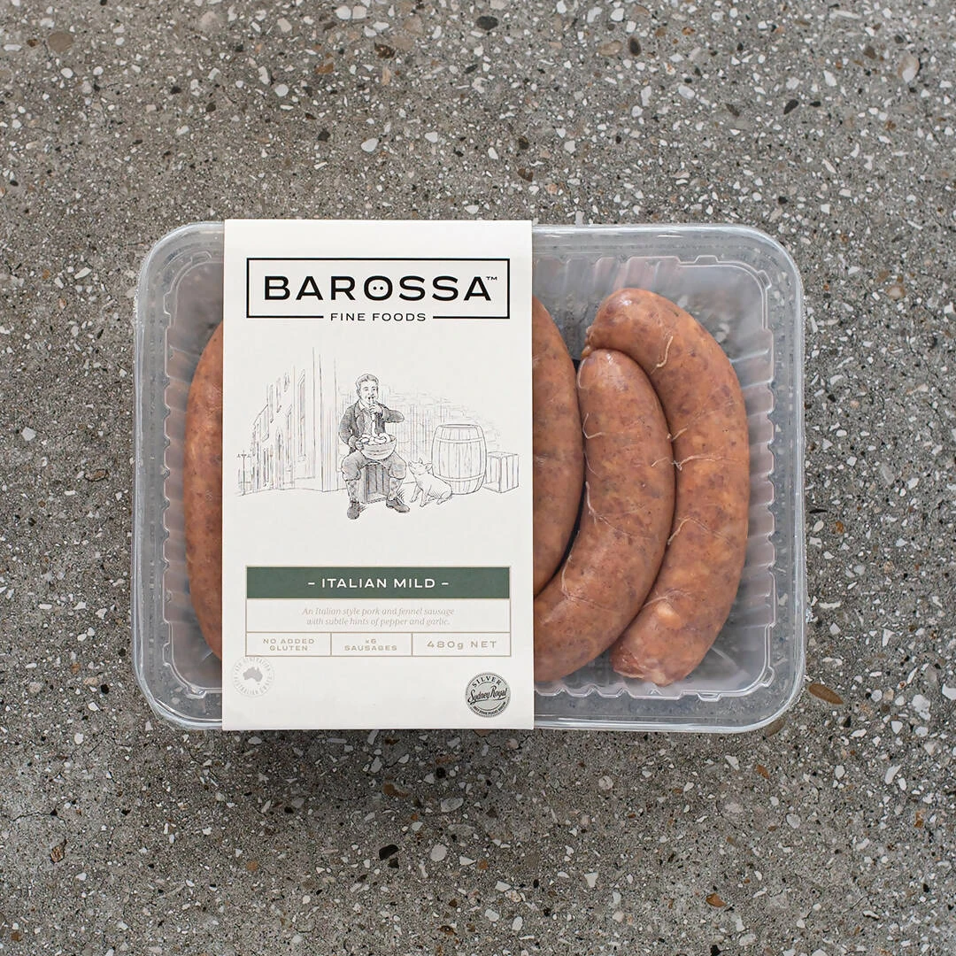 Mild Italian Sausages pack (six sausages.) Gluten Free.