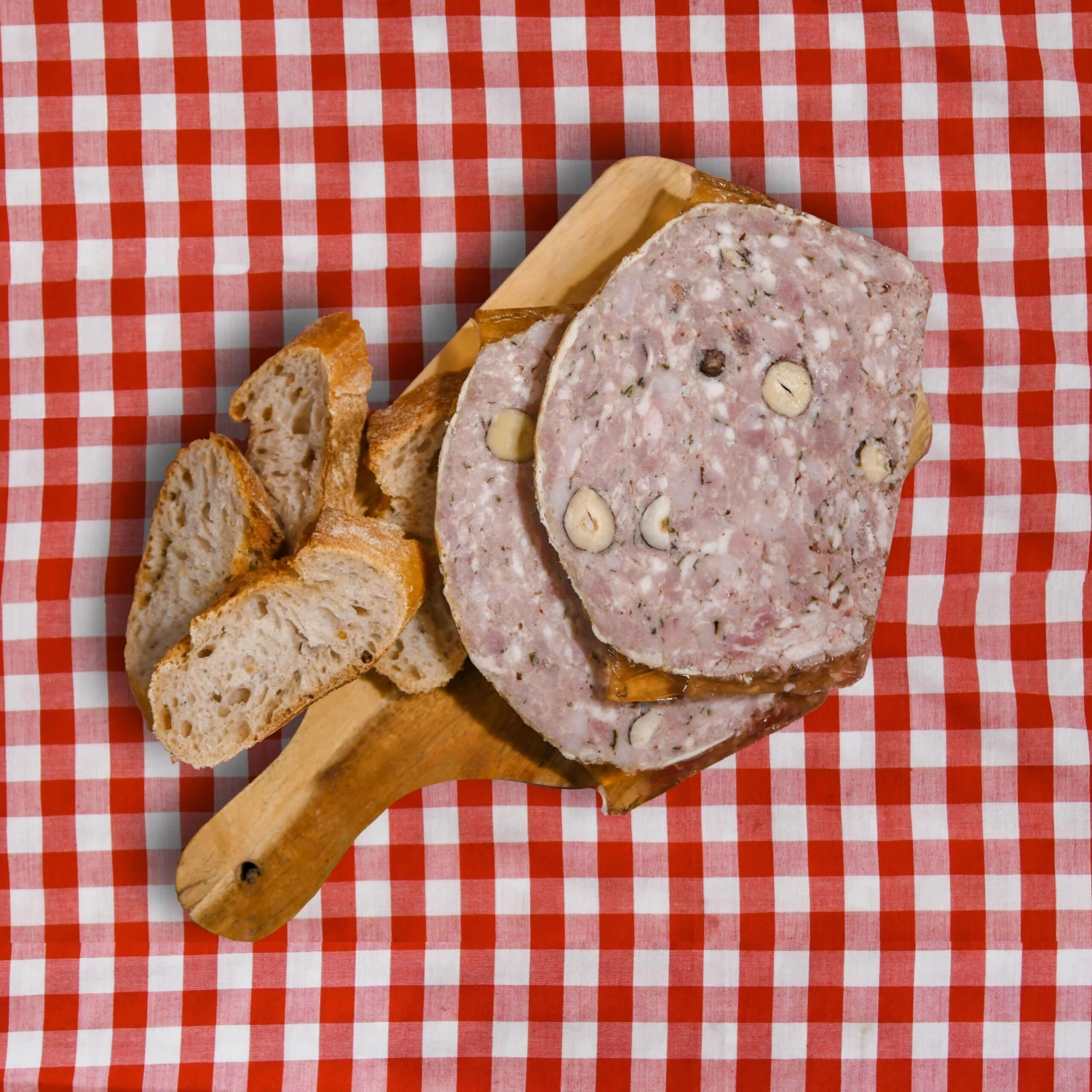 Ingredients: Rabbit meat , pork meat, fresh cream, hazelnuts, shallots, salt, spices, herbs.