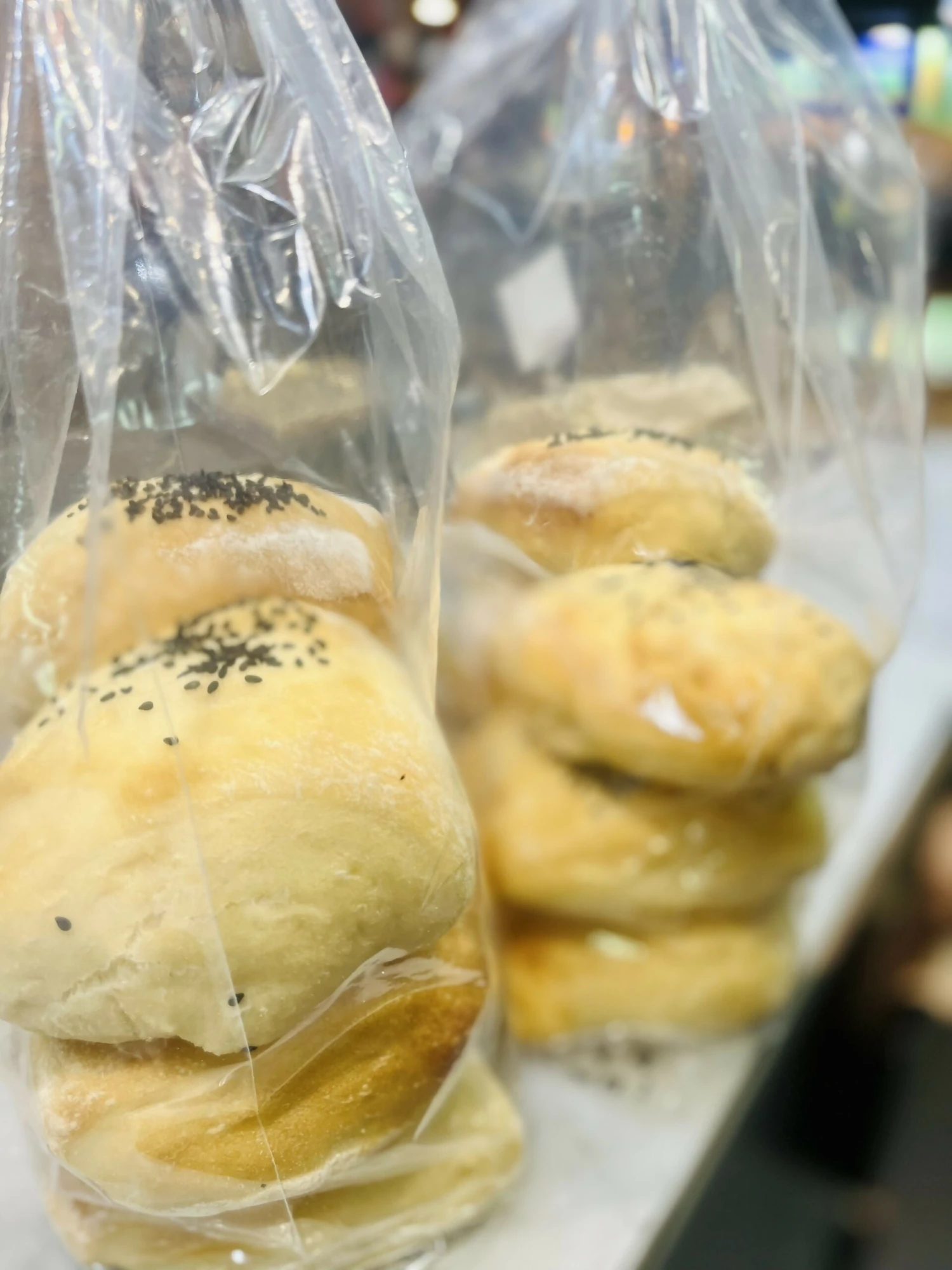 A crowd favourite – housemade Turkish Bread rolls topped with nigella seeds.