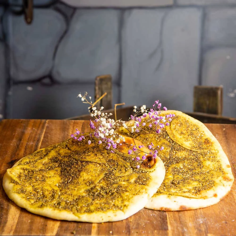 Traditional Lebanese bread with mixed herbs such as sumac and thyme.